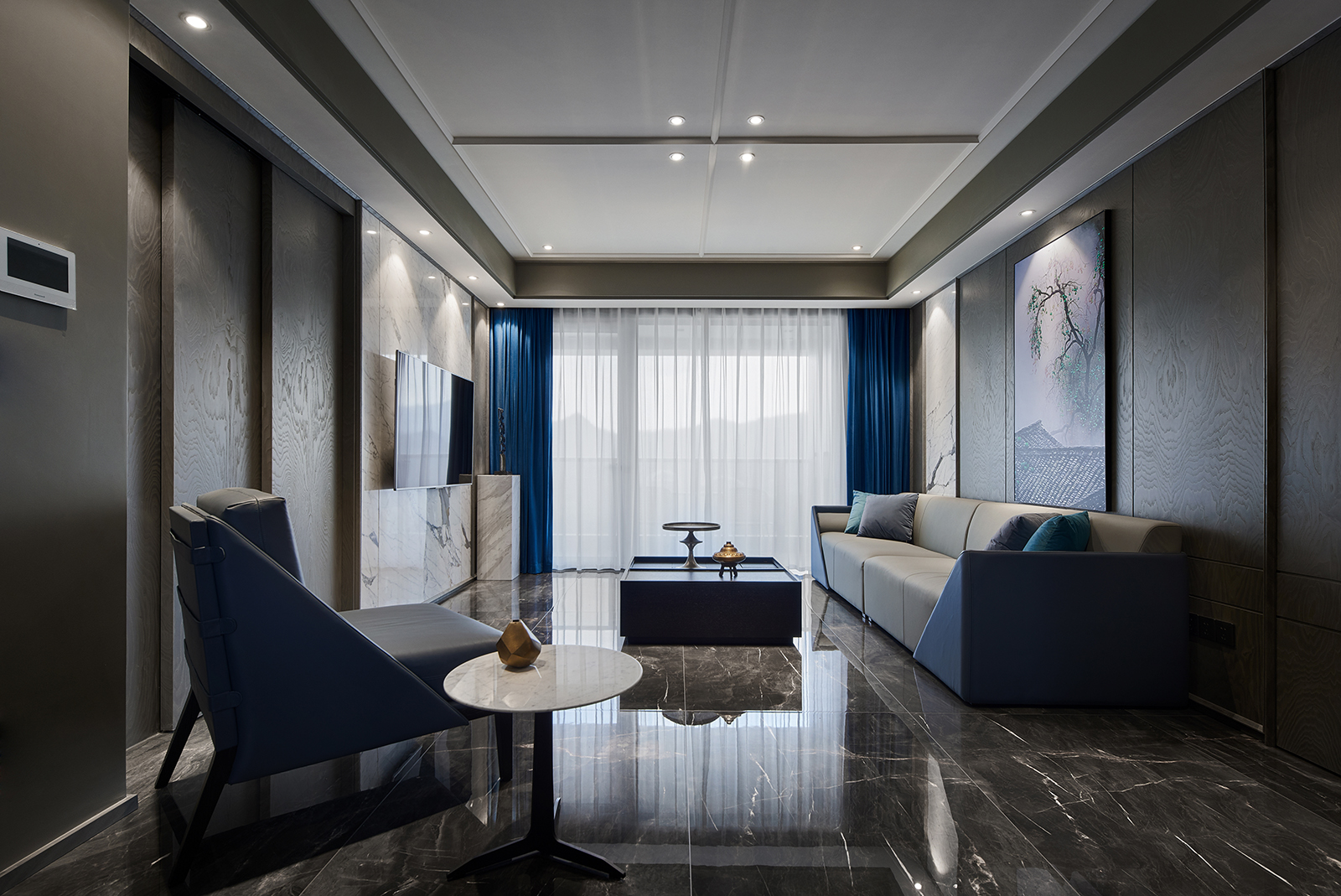 130m²现代简约,黑与蓝呈现的时光静好